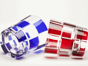 江戸切子 市松文様 オールドペア 青&赤 木箱 日本製