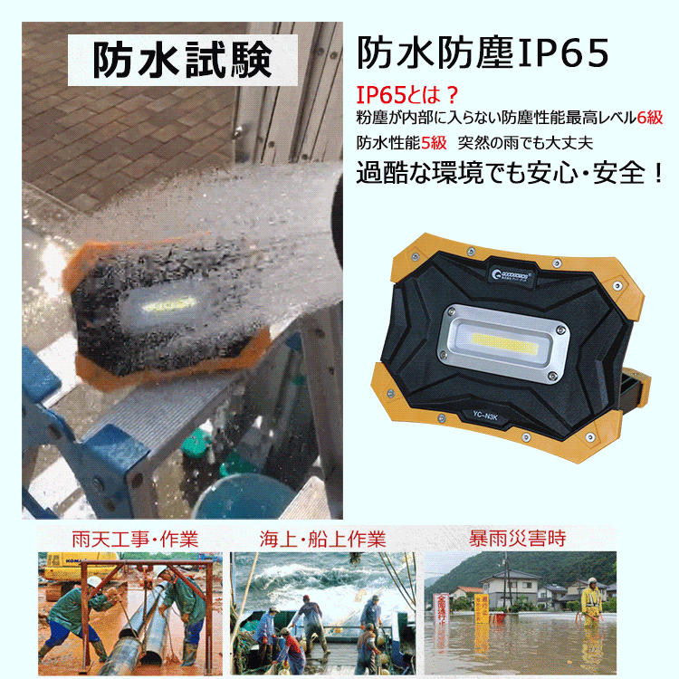 ●用途 夜間作業、自動車整備、アウトドア、駐車場、倉庫照明、停電対策、災害対策、 キャンプ、夜釣り、山登り、散歩、夜間警備、防犯、護身用時に大活躍しています。