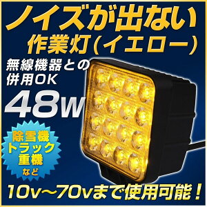 led作業灯 イエロー 48w 12v 24v 除雪作業 フォグランプ ワークライト ノイズレス仕様