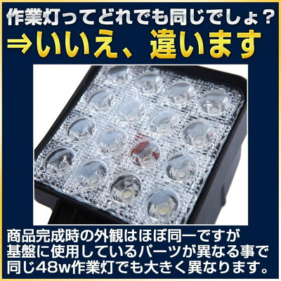同じ作業灯でもワットによって明るさに違いがあり、48w作業灯は幅広い業種で利用されるスタンダードな作業灯となっております。